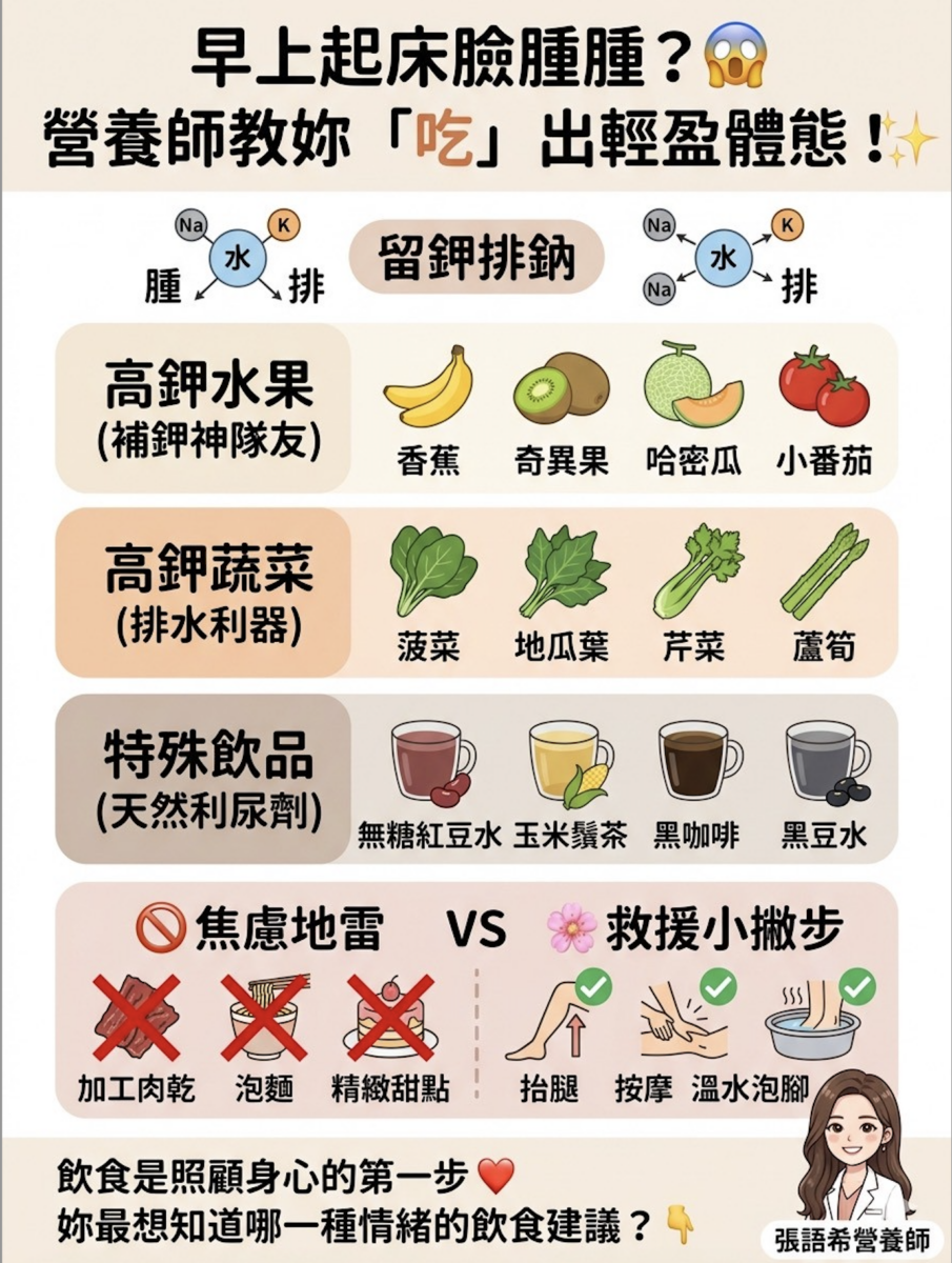 消水腫不應僅是短暫的視覺追求,而是身體代謝機能重整的重要指標。透過營養師所倡導的「留鉀排鈉」科學策略,民眾能以最自然且無負擔的方式,排除體內多餘囤積,找回緊緻的輪廓與輕盈的生理狀態。在繁忙的工作節奏中,學會聽懂身體的電解質警訊,並給予正確的營養支持,才是維持長久美力與健康競爭力的不二法門。讓專業的營養介入成為您的生活後盾,由內而外散發自信光彩,開啟高效健康的每一天。